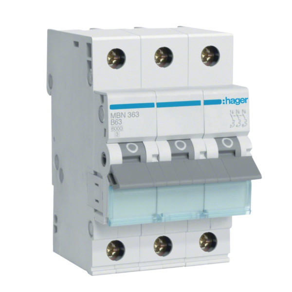 - Ціна на Автоматичний вимикач Hager MBN 3P 6kA 63A B з Бази будівельних матеріалів VENBUD актуальна та оновлюється автоматично з моменту нового надходження матеріалів на склад.
