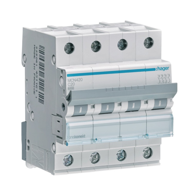 - Ціна на Автоматичний вимикач Hager MCN 4P 6kA 20A C з Бази будівельних матеріалів VENBUD актуальна та оновлюється автоматично з моменту нового надходження матеріалів на склад.