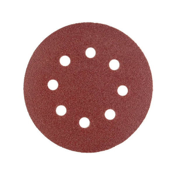 Абразив із зерном K80 ефективно справляється з видаленням старих лакофарбових покриттів, слідів корозії та помітних нерівностей, забезпечуючи швидке та впевнене знімання матеріалу. Вісім отворів сприяють якісному відводу пилу в процесі роботи, покращуючи огляд робочої зони та знижуючи знос кола.