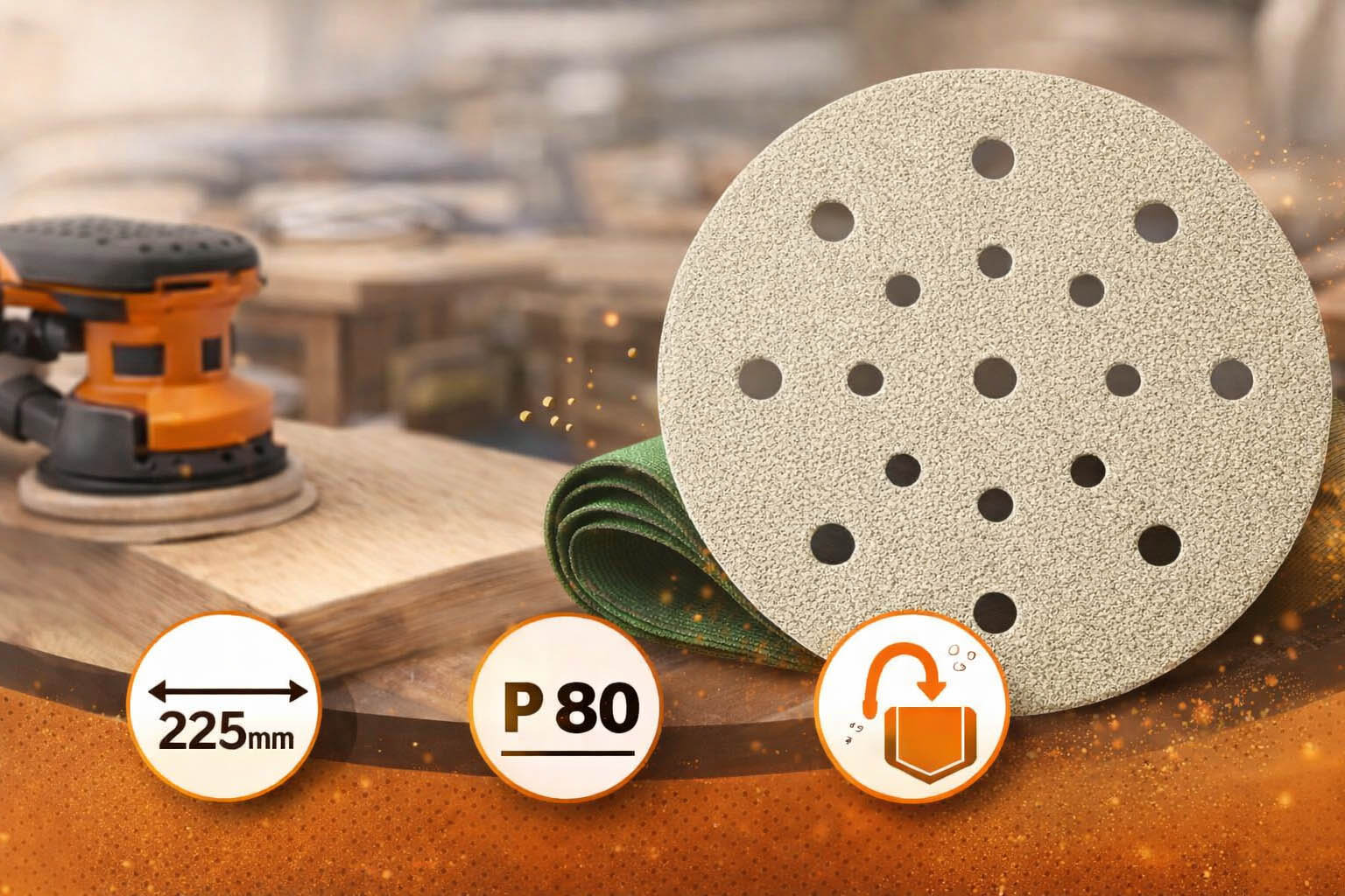 Зернистість P80 оптимальна для грубої обробки: зняття шпаклівки, вирівнювання гіпсокартону, обробки деревини, ДСП, МДФ, а також видалення старої фарби та інших покриттів. Коло підходить як для професійного застосування на будівельних та оздоблювальних об'єктах, так і для інтенсивних ремонтних робіт.