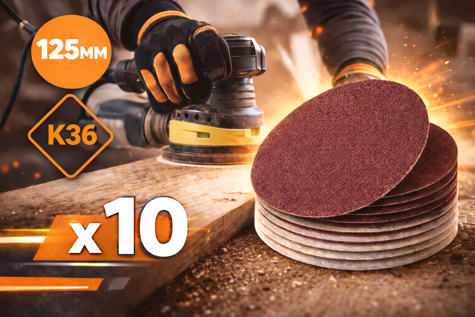 Шліфувальний круг на липучці Polax 125мм/10, К36, 54-046, 10 шт/уп.