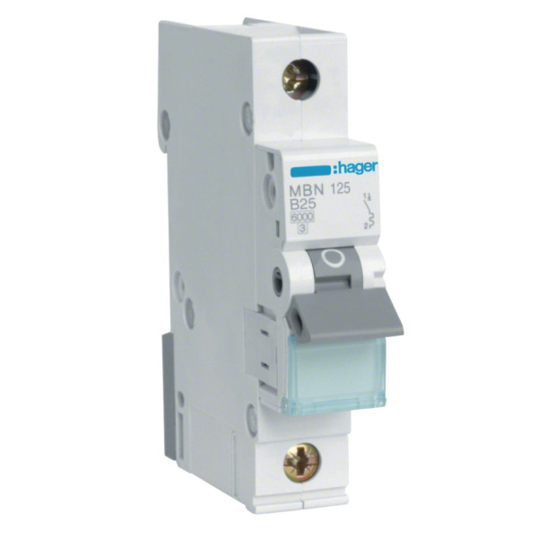 - Цена на Автоматический выключатель Hager MBN 1P 6kA 25A B из Базы строительных материалов VENBUD актуальна и обновляется автоматически с момента нового поступления материалов на склад.