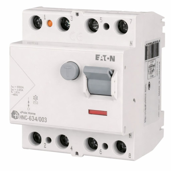 УЗО Eaton 4P 63A предназначено для работы в сетях переменного тока и реагирует на синусоидальные токи утечки типа AC. Номинальный ток 63 А позволяет использовать устройство в сетях с соответствующей нагрузкой, а отключающая способность 4,5 кА обеспечивает стабильную работу в стандартных электрических щитах.
