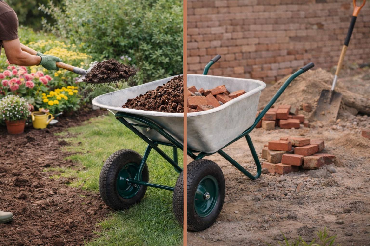 Практичная садово-строительная тачка Forte с двумя колёсами